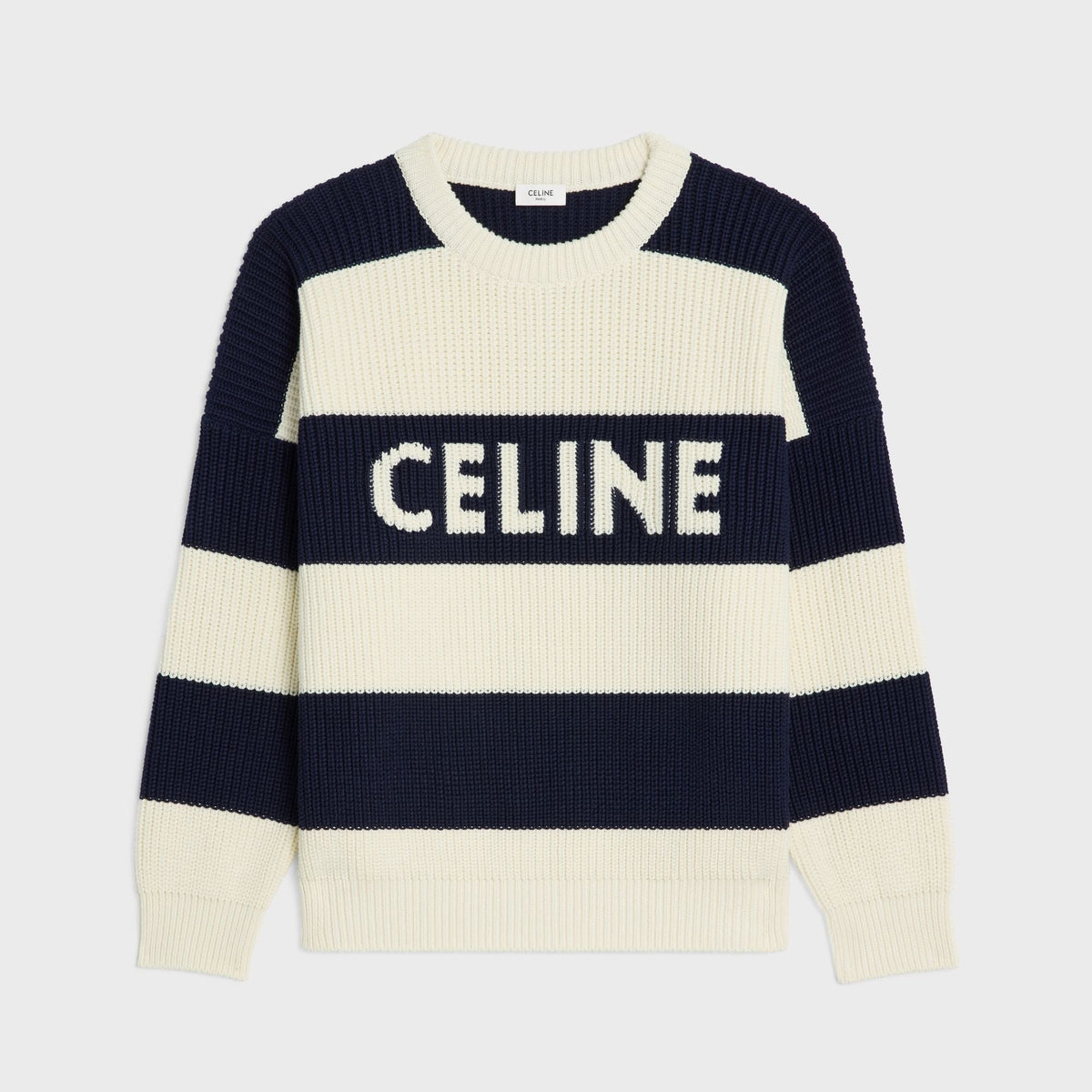 CELINE HOMME taps into its Parisian roots with this sweater. Patterned in navy and ivory stripes, it's been crafted in Italy from breathable cotton and intarsia-knitted with the brand name across the chest. Wear yours with a pair of the label’s jeans.