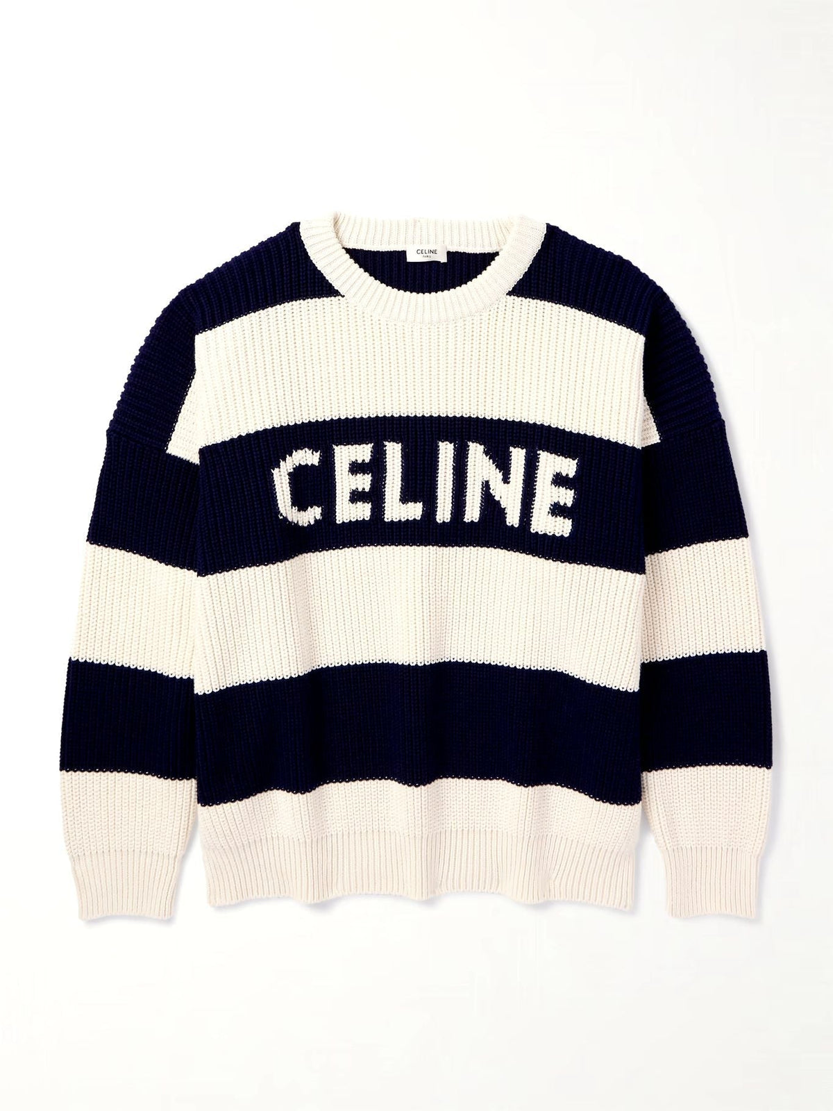 CELINE HOMME Logo-Intarsia Striped Cotton Sweater