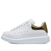 This Alexander McQueen Oversized Sneaker edition combines high-shine gold with a crocodile embossed texture, making it an elegant and attention-grabbing choice for those who appreciate a sophisticated yet distinctive look