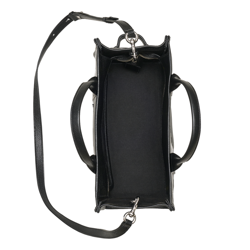 • Top handle, removable and adjustable leather strap
