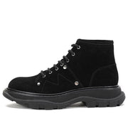 • Lacing: The lace-up front includes black laces that run through silver-tone metal eyelets, ensuring a secure and adjustable fit. The high lacing extends up the ankle, enhancing the boot's edgy appeal.